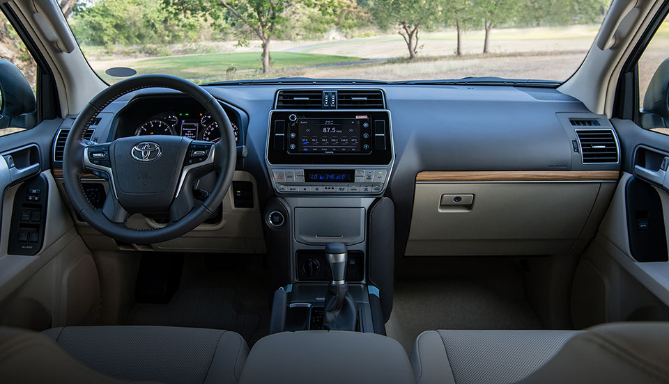 A sleek interior design gives you access to everything you need to control the Toyota Prado.